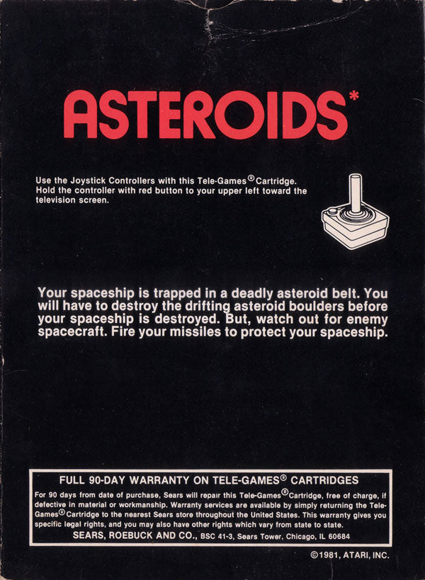 Asteroids for the Atari 2600, also known as '66 Tele-Games', is a classic arcade space shooter game released in 1981. Players navigate a spaceship in an asteroid field, breaking the asteroids into smaller pieces using the ship's lasers while avoiding collisions. The game's simple yet challenging gameplay requires quick reflexes and strategic shooting. It's a genre-defining title that helped cement the golden age of arcade games and remains a beloved classic in the shooter genre.