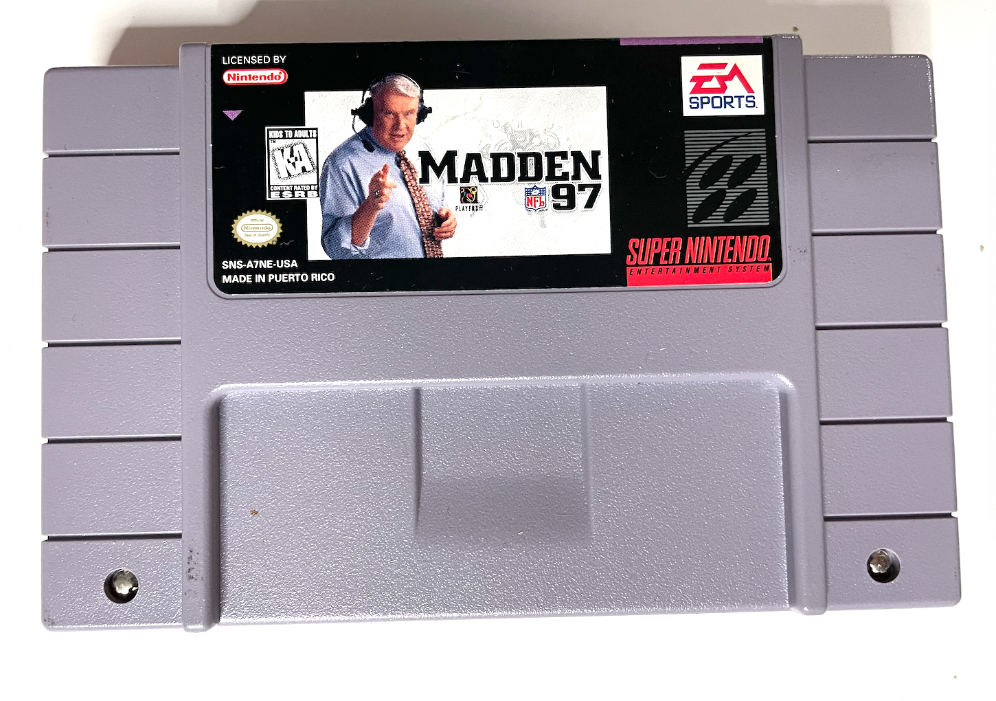 Madden NFL '97 is a sports simulation game that brings the intensity of American football to the Super Nintendo Entertainment System (SNES). Released during the 1996 football season, it is part of the long-running Madden NFL series. Players can choose from real NFL teams and players to compete in games that mirror the NFL experience. It features modes like Season, Playoffs, and Exhibition. With its isometric view, players control athletes to execute plays, make tackles, and score touchdowns. Its detailed graphics and strategic gameplay cater to both casual and die-hard football fans.