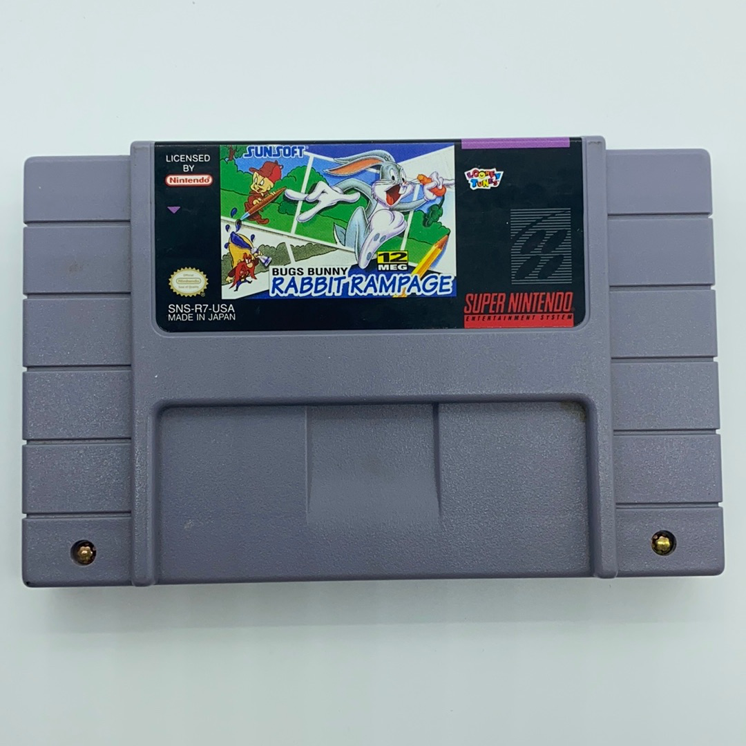 Bugs Bunny Rabbit Rampage is an action-platformer game for the SNES, released in 1994. Based on the Looney Tunes cartoon, players control the iconic Bugs Bunny in this side-scrolling adventure inspired by the classic short Rabbit Rampage. Bugs faces off against numerous enemies and bosses, including familiar characters like Elmer Fudd and Yosemite Sam, using wacky weapons and costumes. With colorful graphics and varied levels mimicking different episodes, players outwit and outjump adversaries, striving to alter the game’s script penned by the mischievous animator at the storyline's core.