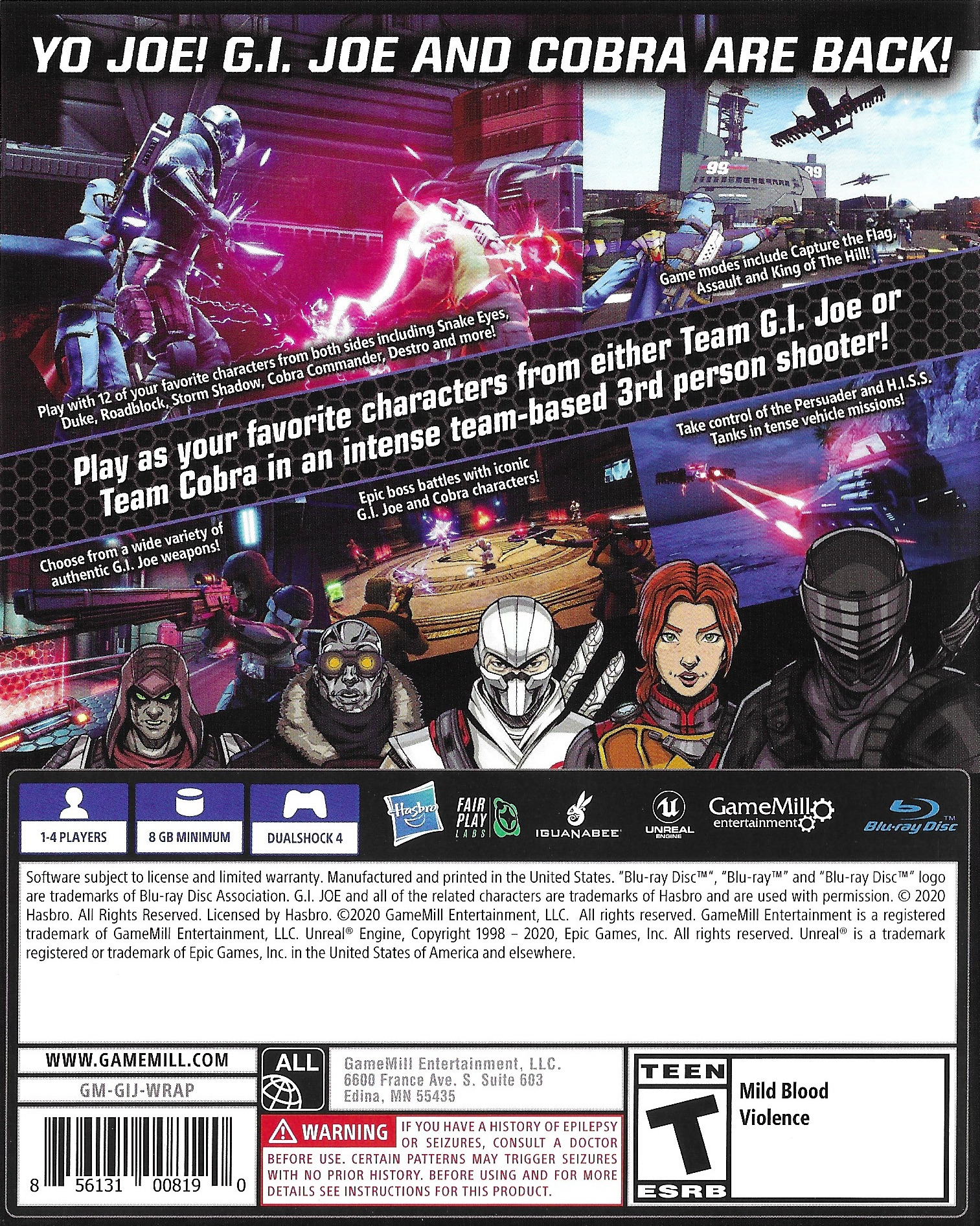 G.I. Joe: Operation Blackout is a team-based third-person shooter where players join the ranks of the iconic G.I. Joe team or the nefarious Cobra organization. Released for the PS4 in 2020, this game allows fans to experience the G.I. Joe universe from multiple perspectives. With a variety of characters, weapons, and locations, players can engage in both single-player and local split-screen multiplayer. The game is set in the genre of action and shooter, capturing the essence of the classic G.I. Joe toy line and animated series.