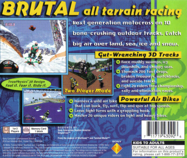 Jet Moto is an adrenaline-pumping racing game released for the Sony PlayStation 1. Developed by SingleTrac and published by Sony Computer Entertainment, the title falls within the futuristic racing genre. Players control hoverbikes that defy gravity, known as 'Jet Motos,' zipping across diverse terrain at breakneck speeds. The game features a blend of both natural and sci-fi settings, spanning beaches, swamps, and urban landscapes. With its fast-paced action, challenging courses, and a unique physics system that allows for thrilling stunts and maneuvers, Jet Moto has become a beloved classic among racing enthusiasts.