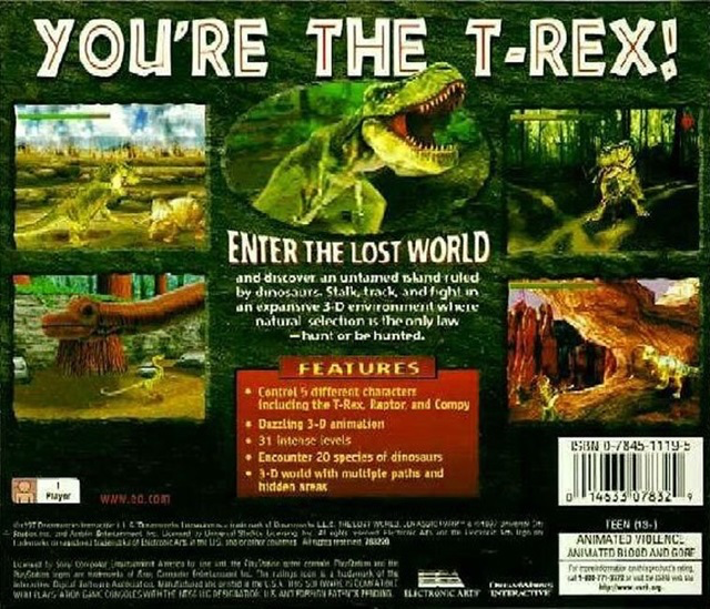 Lost World: Jurassic Park for the Sony PlayStation 1 is an action-adventure game based on the 1997 film of the same name. As a 2.5D side-scrolling platformer, players navigate through prehistoric environments, controlling various characters from the movie and dinosaurs themselves. With objectives ranging from survival to exploration, players encounter numerous species of dinosaurs in combat and puzzle-solving scenarios. The game captures the film's atmosphere with its detailed graphics and sound, providing a thrilling experience for fans of the franchise.