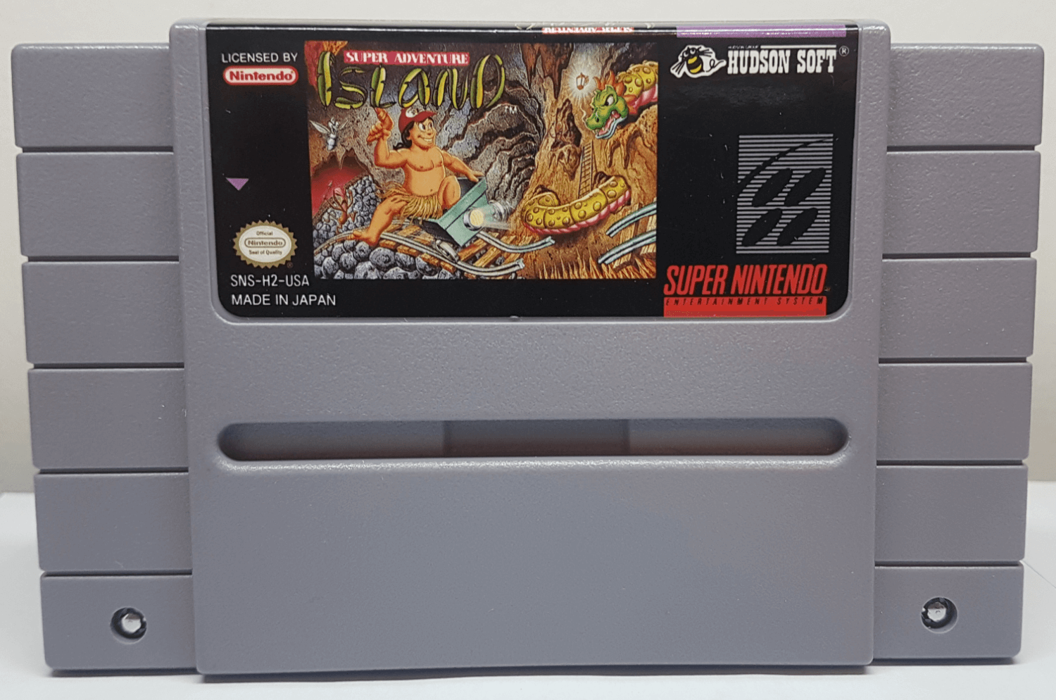 Super Adventure Island is a side-scrolling platformer game for the SNES, developed by Hudson Soft. Released in 1992, it follows the protagonist Master Higgins on a quest to rescue his girlfriend from the evil witch doctor. Players navigate various levels filled with enemies, obstacles, and collectibles. The game features vibrant, colorful graphics typical of the early '90s and a catchy soundtrack. As Higgins, players use weapons like boomerangs and hatchets to defeat foes while jumping and skating through tropical environments. Its charming style and gameplay define this classic retro adventure.