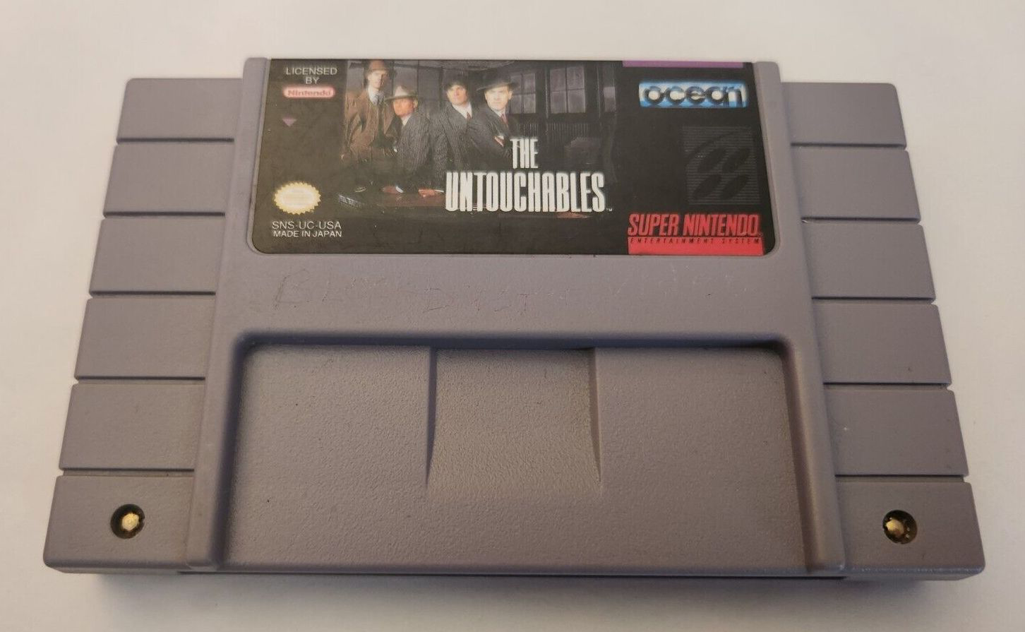 The Untouchables for the Super Nintendo Entertainment System (SNES) is an action-adventure game based on the 1987 film of the same name. Players follow the story of Eliot Ness and his team of agents as they attempt to bring down the notorious gangster Al Capone during Prohibition-era Chicago. The gameplay is a mix of side-scrolling shooting, driving, and platforming levels, each reflecting key scenes from the movie. Players must navigate through various challenges, taking on mobsters and collecting evidence to build a case against Capone. The game falls within the action genre.