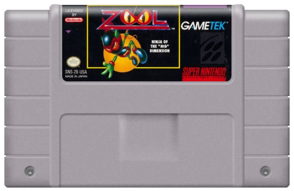 Zool: Ninja of the 'Nth' Dimension is a fast-paced side-scrolling platformer game for the Super Nintendo Entertainment System (SNES). Released in the early 1990s, it features the titular character Zool, a ninja from the Nth dimension, on a quest to prove his worth and gain ninja mastery. Players navigate through various vividly designed levels that are themed around sweets and music, battling whimsical enemies and facing challenging bosses. The game is known for its bright, colorful graphics, responsive controls, and a memorable chiptune soundtrack that complements its arcade-style gameplay.